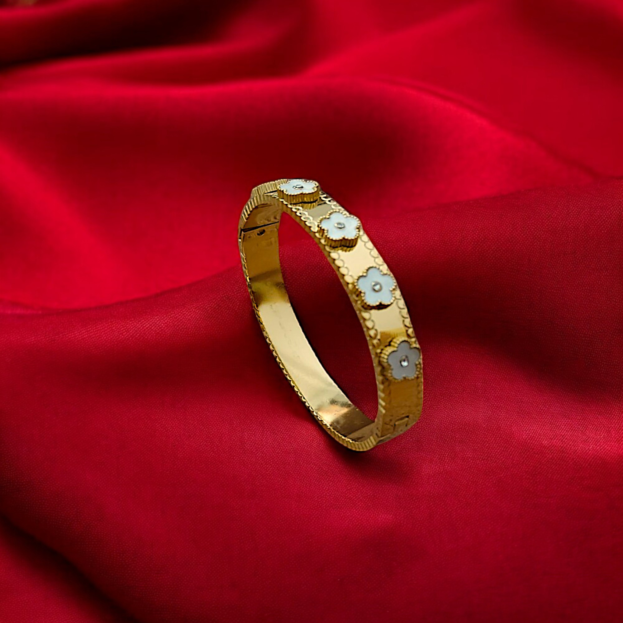 Be the first to review “Fevyn Gold Plated Stainless Steel Openable Bracelet Petal Crystal”