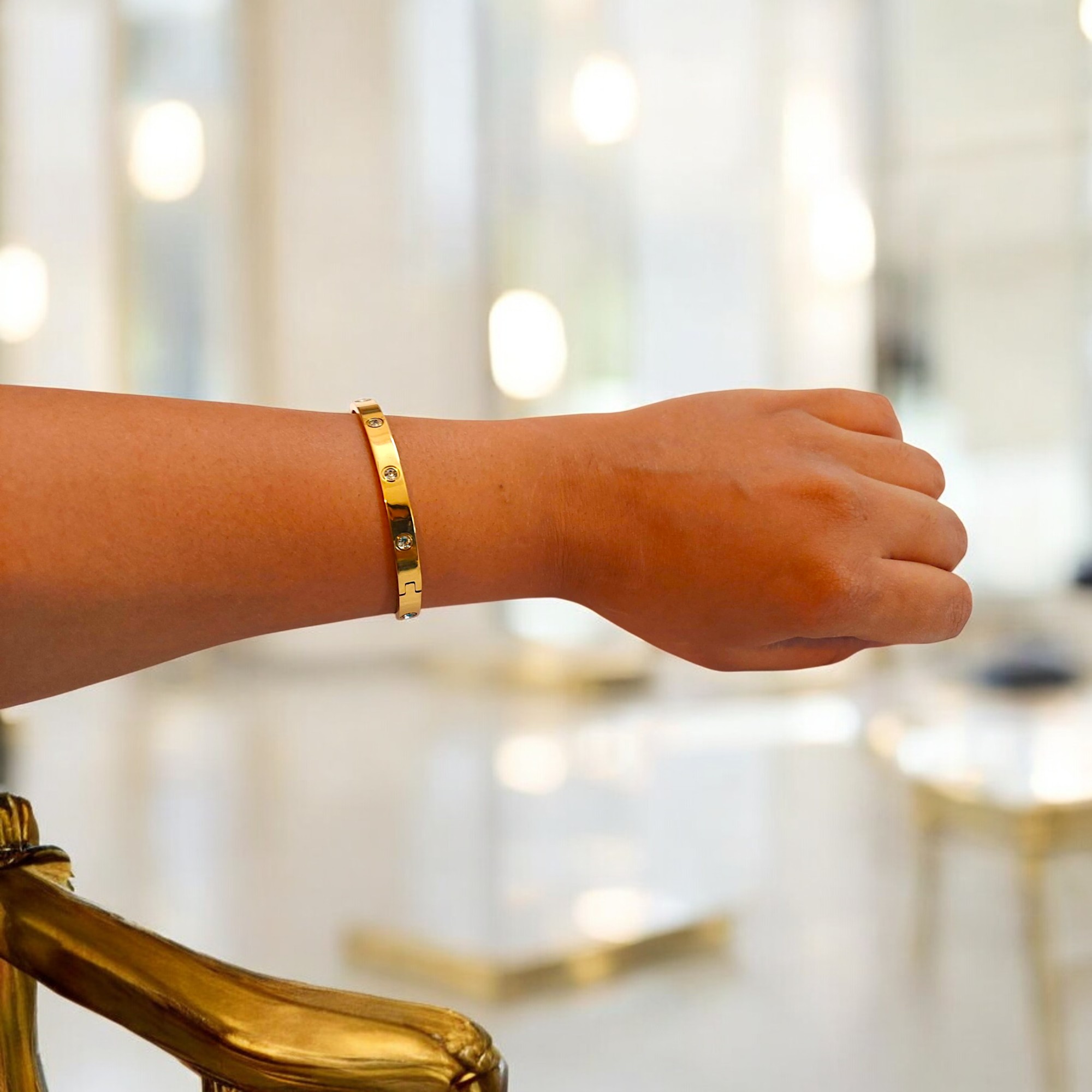 Fevyn Gold Plated Stainless Steel Openable Crystal Bracelet | Anti Tarnish Jewellery for Women